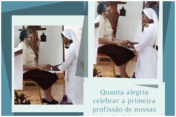 A Congregação das Irmãs Missionarias Capuchinhas com muita alegria acolhe no dia 13 de Março, as duas Irmãs moçambicanas: Lizete Anselmo Murula e Milena Antônio Sozinho, que concluem o período de formação do noviciado em Moçambique e decidem pertencer a família religiosa na Congregação, de forma mais intensa, dizendo sim a Deus a serviço do seu povo, consagrando suas vidas com a Profissão Religiosa dos três Votos Religiosos: Pobreza, Castidade e Obediência, na Congregação das Irmãs Missionárias Capuchinhas. A profissão solene foi realizada as 10:00hs na capela da casa do Bispo, Presidida por Dom Germano Grachane e concelebrada pelo Padre Agostinho administrador apostólico da Diocese de Gurué. Na impossibilidade da presença da Superiora Geral da Congregação, Irmã Dulcis Negrão Rodrigues, a mesma delegou para receber os votos das Irmãs, a representante da região moçambicana, Irmã Aila Abreu. Estiveram presentes as Irmãs Anônia Helena Mestra de Noviças, Irmã Zilda que contribuiu, com o retiro preparatório, Irmã Clara juniorista as Irmãs das três Fraternidades moçambicanas, as famílias das Irmãs professandas e algumas pessoas da comunidade. Em seguida, aconteceu um simples momento de convivência em homenagem às Irmãs que professaram. Considerando o momento de desafios de pandemia vivenciado por vários países do mundo, o evento ocorreu com restrições, porém com representações significativas. A Congregação se maravilha em louvores a Deus pelas Irmãs Milena e Lizete e agradece todas as Irmãs, parentes e amigos que colaboraram para este momento significativo para todas nós Congregação. Por tudo louvemos ao Senhor! Parabéns Irmãs!