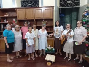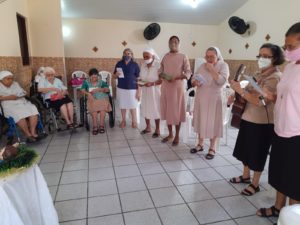 As Irmãs Missionarias Capuchinhas, celebraram o Natal do Senhor começando na própria família congregacional, nas próprias Fraternidades. Ainda em tempo de advento, nos dias 18,19 e 20, o Governo Geral realizou visitas nas Fraternidades da região do Ceará. O objetivo da visita foi conviver com as Irmãs, vivenciar o clima de advento e Natal com a Celebração, confraternização, musica, sintonia com as pessoas que pedem orações e muita escuta das Irmãs nas realidades de missão. Foram momentos edificantes, descontraídos e de forte presença de Deus. Jesus não só chega, Ele já está dentro de cada pessoa como está expresso também no canto natalino de Irmã Lucia Silva, que nos acompanhou durante este percurso: “Venham depressa, venham contemplar, uma estrela vive a brilhar, bela e linda raios de luz, hoje anuncia o Cristo Jesus.” Louvado Sejas Deus de Amor hoje teu Filho para nós chegou. As Fraternidades que foram visitadas pelo conselho geral foram: Noviciado em Capim de Roça, Instituto dos Pobres em Maranguape, Santa Rosa de Viterbo em Fortaleza, Fraternidade de Emaús, Casa geriátrica Frei João Pedro, Porciúncula, Fraternidade Santo Agostinho em Antônio Diogo e Fraternidade Irmã Antonina – no Bairro Servi luz em Fortaleza. Por tudo demos Louvores ao Senhor.