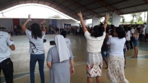 Irmã Gislaine Missionária Capuchinha da Fraternidade Santa Teresinha de Imperatriz, juntamente com as Jovens aspirantes Mônica Dias e Manuela Reis, participam do Grande Evento que se realiza hoje na Diocese de Imperatriz,  a II ROMARIA DIOCESANA  DA PASTORAL DA JUVENTUDE, organizada pela Pastoral Diocesana de Imperatriz, está sendo realizada na cidade de São Pedro da Água Branca, no Maranhão com o Tema: Nossa Voz Florescerá: o grito da Juventude pela Vida das Companheiras. Ela foi para a frente de todo o povo e conduziu as mulheres na dança. Em clima de reflexões, muita vida e esperança a Juventude da Diocese retoma suas atividades normais pós pandemia. Centenas de Jovens  realizam  caminhada, celebrações com cantos e convivência. Celebrar a vida e esperança reanima a vida e nos torna sempre jovens independente de idade cronológica, mas sim um estado de espírito. Viva a juventude!