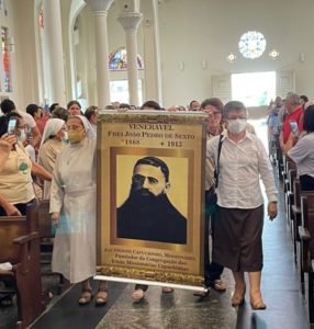 Hoje, nesta manhã dia da Santíssima Trindade, foi realizada Santa Missa na Catedral de Fortaleza pela Causa de Beatificação do Venerável Frei João Pedro de Sexto São João, Fundador da Congregação das Irmãs Missionárias Capuchinhas, do Servo de Deus Dom Antônio de A. Lustosa e das Servas de Deus: Irmã Clemência que pertence a Congregação das Irmãs de Caridade e Dona Rosita Paiva Fundadora do Instituto das Irmãs Josefinas que pertencem à Diocese de Fortaleza. A Santa Missa foi Presidida por Dom José Antonio Aparecido Tosi Marques Arcebispo Metropolitano de Fortaleza e concelebrada por Frei Pe. Roberildo Provincial dos Capuchinhos. Estiveram presentes as Irmãs Missionárias Capuchinhas, das Fraternidades de Santa Rosa, Casa Frei João Pedro, Instituto Frei João Pedro, Porciúncula, Noviciado Capim de Roça e Instituto dos Pobres-Maranguape juntamente com a Superiora Geral Irmã Maria das Neves Martins Franco, Irmãs do Conselho Geral e a Vice Postuladora pela Causa de Frei João Pedro, Irmã Utília Maria. Participaram as Irmãs do Instituto Josefino, Congregação São Vicente de Paula, Frades Capuchinhos e centenas de fiéis que com muita expressão de Fé rezavam e cantavam juntamente com o coro de Seminaristas que muito harmonioso animou liturgia cantada. Uma iniciativa da Diocese para as quatro causas de Beatificação e Canonização em andamento na Diocese de Fortaleza. Dia 21 de Maio próximo passado, Frei João Pedro recebeu o Decreto da promulgação de VENERÁVEL pelo Papa Francisco, isto é, foram aprovadas as suas virtudes Heroica, portanto a Congregação louva ao Senhor pelo seu testemunho de missionário temente a Deus, e juntas revivem o que Frei João Pedro disse às Coofundadoras: “Ide com coragem, alegria, misericórdia….”