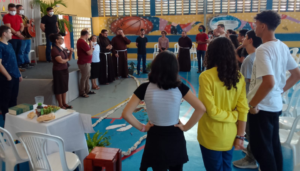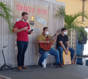 As Irmãs Missionárias Capuchinhas promovem “café com louvor” com a juventude de Messejana no Ceará. Encontro realizado no Instituto Frei João Pedro, escola da Congregação. Contou com a participação de jovens, estudantes, jovens da paróquia, de Messejana e outras regiões de Fortaleza, presença e colaboração dos Frades Capuchinhos do Santuário Sagrado Coração e Capuchinhos do Seráfico de Messejana animado pelas Irmãs Missionárias Capucinhas, juntamente com os jovens talentosos do Instituto: Felipe, Welisom (Bebel) e Deones. O tema principal: ” CRISTO VIVE E TE QUER VIVO” . A Reflexão foi fundamentada no Evangelho de Lucas 24- Caminho de Emaús. Dinamizado com caminhos, cantos reflexões, símbolos, encenações e café com louvor. Um dia de muita alegria e interação.