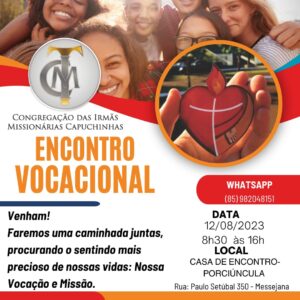 Atenção Jovens! Se aproxima de você mais um encontro vocacional! Neste, lhe acolheremos em nosso espaço-Porciúncula em Messejana. Veja mais!