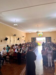 Dia 06 de Agosto, por ocasião do mês vocacional as Irmãs Lúcia Silva e Hilarilda Cordeiro de Matos, participaram do encontro Vocacional, organizado pela Paróquia Nossa Senhor da Conceição em Tabatinga -Maranguape-Ceará. O encontro teve inicio com a Santa Missa, em seguida o café comunitário, animação do conjunto e logo após Irmã Lucia Silva foi convidada a dar o seu testemunho vocacional, o que contribuiu para despertar a atenção de aproximadamente 100 jovens ali presentes. Irmã Lúcia enfocou aspectos relevantes da sua Vocação e Consagração Religiosa como: Uma vocação que nasceu do testemunho de vida da família dedicada à comunidade; a escolha e discernimento pela Congregação Capuchinha por observar o testemunho da vida das Irmãs na missão e na vivência do carisma franciscano juntas aos mais necessitados; acolher o Dom de cantar, tocar e compor como instrumento para evangelizar e ser evangelizada junto às comunidades e todo o povo de Deus, e o último aspecto enfocado foi o desafio de deixar o país pela missão além Fronteiras na Itália, contudo, acolhida da gratuidade de Deus na vida de missão e contemplação, o que lhe proporcionou internalizar a Mística e Espiritualidade Franciscana e dimensão de Despojamento ao beber na fonte de São Francisco, sendo presença missionária e oração junto aos peregrinos, no Santuário do Despojamento em Assis Itália e atualmente no Brasil. Durante o encontro aconteceram mais dois depoimentos: Irmão Agostinho Maria que abordou aspectos do despertar vocacional de forma diferente, fora da família, um caminho de muitas luzes e discernimento. Por fim Pe. Vicente Diocesano deu o seu testemunho, iniciando com a apresentação dos seminaristas diocesanos. O encontro foi encerrado com a Bênção com o Santíssimo. Por tudo demos graças ao Senhor!