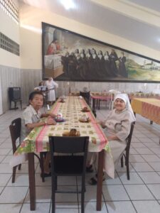 Dia 01 do corrente mês, a casa Geriátrica Frei João Pedro das Irmãs Missionárias Capuchinhas em Messejana-Ceará,  teve a grande alegria em receber o grupo “Fraterno Amor” de Fortaleza, coordenado pelo Sr. Miguel. O grupo segue uma tradição de 15 anos de presença solidária na Casa Frei João Pedro, servindo as Irmãs anciãs com muita alegria. O momento aconteceu com a confraternização no café da manhã ofertado pelo grupo. Estiveram  presentes as Irmãs da Fraternidade: Irmãs Anciãs, Irmã Francisca Joelma coordenadora, Irmã Teresinha Rubem e a Conselheira Geral  Irmã Lúcia Silva, que contribuiu com reflexões sobre o Advento e animação durante o momento com músicas do período natalino. Após a confraternização houve a reflexão, oração e espiritualidade dinamizado com cantos e coordenado pelo senhor Miguel, seu grupo e as Irmãs Lúcia Silva e Francisca Joelma. Muita gratidão o grupo “Fraterno Amor” por tanta dedicação e gestos de solidariedade na gratuidade divina. Por tudo louvemos ao Senhor.