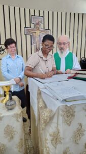 Hoje, dia 10 de agosto, com muita alegria a Congregação acolhe a decisão de Irmã Milenia Antônio Sozinho, Missionária Capuchinha, de origem moçambicana, que se encontra em processo de formação na etapa do juniorato, portanto, pede à Congregação para renovar os votos de Castidade, Pobreza e Obediência por mais um ano, conforme as Constituições das Irmãs Missionárias Capuchinhas. Irmã Milenia se encontra no Brasil intensificando sua formação acadêmica e Religiosa, integrada na fraternidade Instituto Frei João Pedro em Messejana. Irmã Maria das Neves Martins Franco, Superiora Geral, a acolhe em nome da Congregação a decisão de Irmã Milenia. A cerimônia aconteceu durante a Celebração Eucarística, presidida por Frei João Alberto OFMCap, na Capela da Fraternidade, na presença do povo de Deus e das Irmãs da Congregação. A vida Religiosa é um sinal profético para a Igreja. Deus chama, acompanha e capacita as jovens que desejam responder o chamado e o povo de Deus agradece a presença e contribuição que uma missionária capuchinha com simplicidade e alegria exerce a missão. Louvado sejas o Senhor por tudo que Ele faz em nosso favor. Parabéns Irmã Milenia!