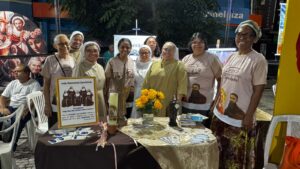 O Ano de 2025 -2026, a Congregação das Irmãs Missionárias Capuchinhas optou por ser o ano Vocacional da Congregação. A abertura aconteceu em toda a Congregação durante o mês de Agosto e se estenderá até agosto de 2026. Durante o ano haverá uma programação extensa com a juventude com vários eventos nos três países: Brasil, Moçambique e Itália. Neste dia 30, encerrando o mês Vocacional, a Congregação esteve presente na Praça de Messejana para “show – musical vocacional”, organizado pela juventude da Paróquia de Messejana. Entre outras congregações, as Irmãs Missionárias Capuchinhas estiveram presentes com stands, acompanhando, escutando e expondo o Carisma para a população e sobretudo para as jovens que buscam conhecer a Congregação entre elas esteve presente a jovem aspirante, Isadora que aspira ingressar na Congregação. Irmã Maria das Neves Martins Franco a Superiora Geral da Congregação participou com mais dezenas de Irmãs, com apoio, incentivo e aproximação com as jovens. O evento aconteceu na noite do dia 30 por ocasião do encerramento do mês vocacional. Nos acompanhe nas redes sociais durante o ano vocacional com as programações que serão publicadas e caso sinta desejo de ser acompanhada para fazer seu discernimento vocacional, procure uma Irmã Missionária Capuchinha, pois estamos presentes em 12 estados do Brasil, quatro províncias de Moçambique e em Asssis Itália. Você nos encontrará neste site e instagram